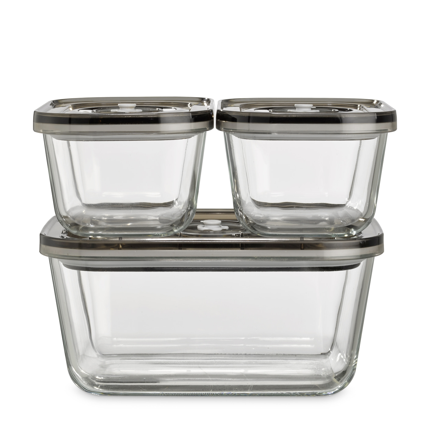 ‘- Juego de recipientes de vacío apilables de vidrio con tapa de SAN para un almacenamiento que ahorra espacio.