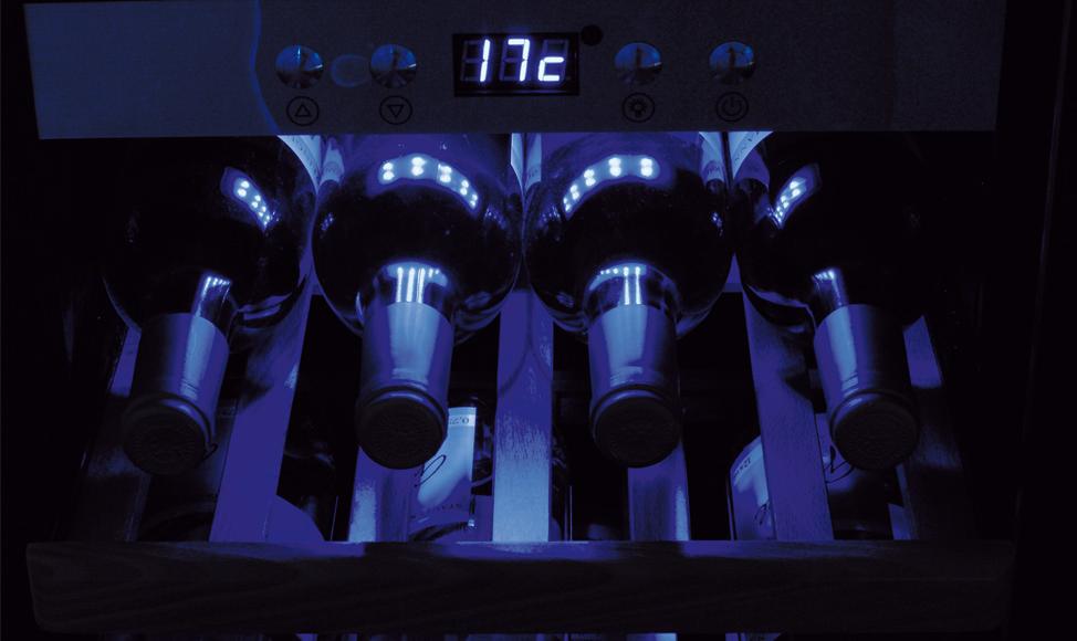 | • Una zona de temperatura. • Vinoteca de alta calidad con compresor • Capacidad para 12 botellas • Puerta acristalada aislante, con tratamiento anti-rayos UVA para evitar la pérdida del aroma. • Excelente aislamiento térmico para favorecer el bajo consumo. • Temperatura regulable de 5 °C a 22 °C. • Diseño atemporal, con elegante frontal de acero inoxidable y doble cristal. • Bandejas de madera extraíbles • Eficiencia energética Clase G. |